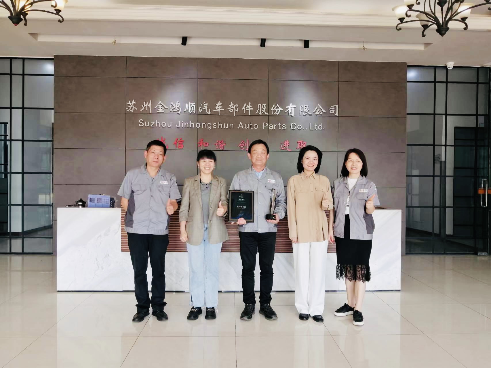 2023年10月24日,蘇州金鴻順汽車部件股份有限公司(以下簡稱“金鴻順”)榮獲福建奔馳汽車有限公司(以下簡稱“福建奔馳”)“優(yōu)秀供應商”榮譽稱號。金鴻順副董事長洪建滄、區(qū)域總經理李永湍、福建奔馳采購經理蘇玉珍等出席授予儀式。