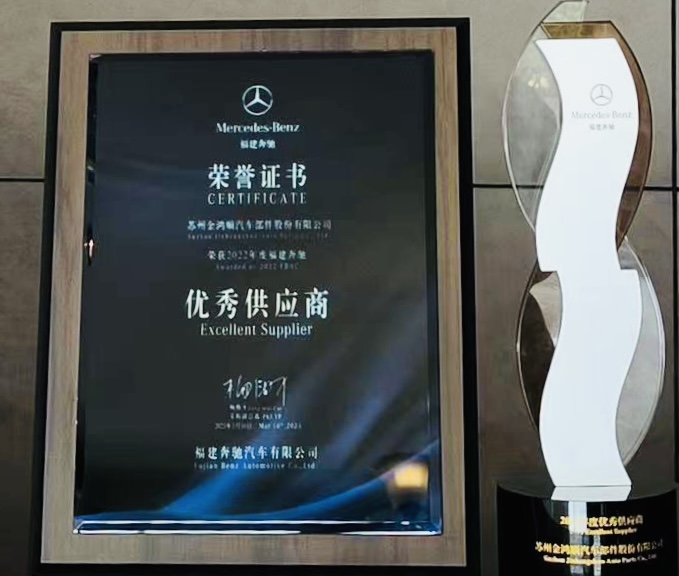 自2018年成為福建奔馳供應商體系的一部分以來,金鴻順一直秉承以客戶為中心的原則,積極致力于生產和質量管理,嚴格把控產品,確保訂單及時交付。過硬的產品質量和滿意的客戶服務使其在眾多供應商中脫穎而出獲此殊榮。